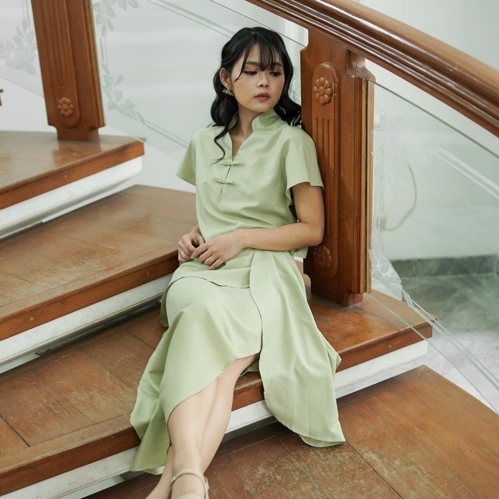 (BUNDLE) Gao Oriental Top + Shang Drape Skirt (Matcha)