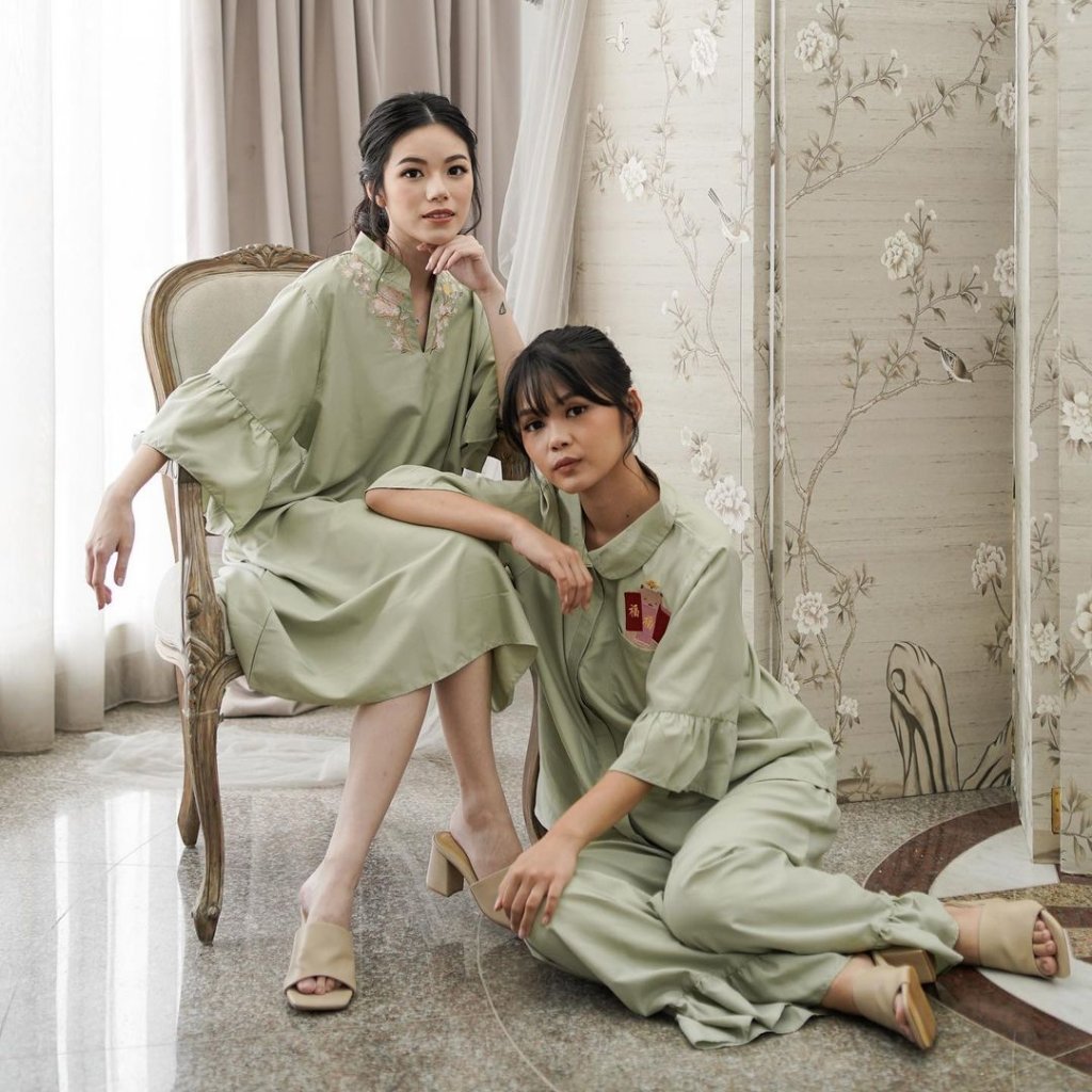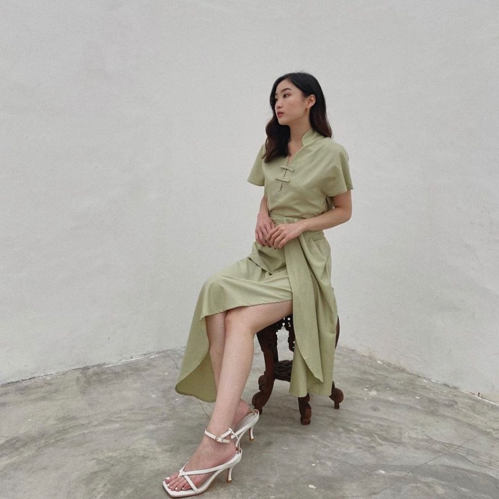 (BUNDLE) Gao Oriental Top + Shang Drape Skirt (Matcha)