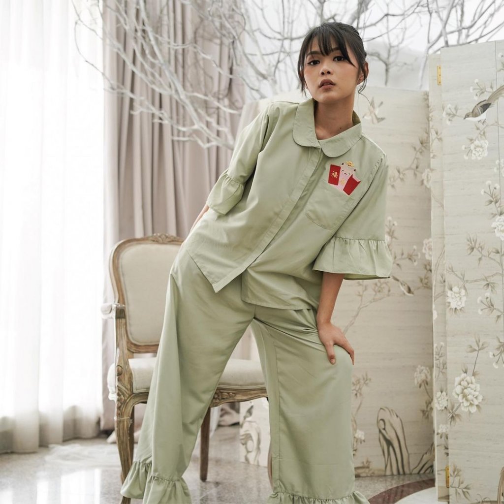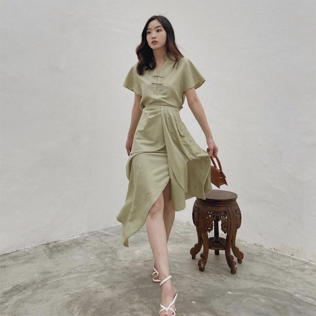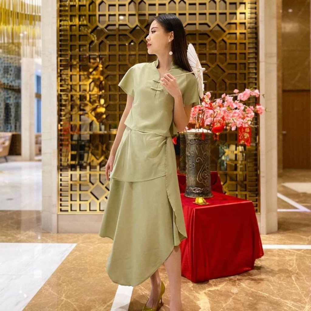 (BUNDLE) Gao Oriental Top + Shang Drape Skirt (Matcha)