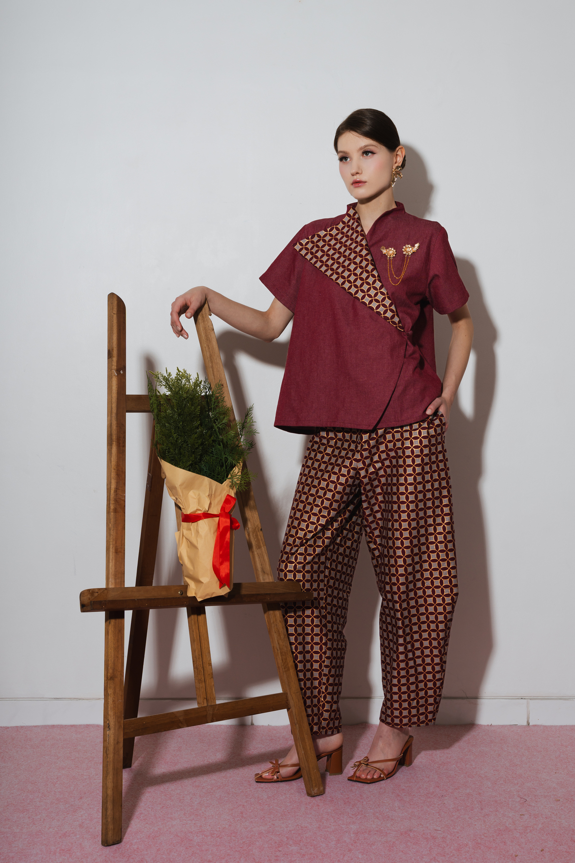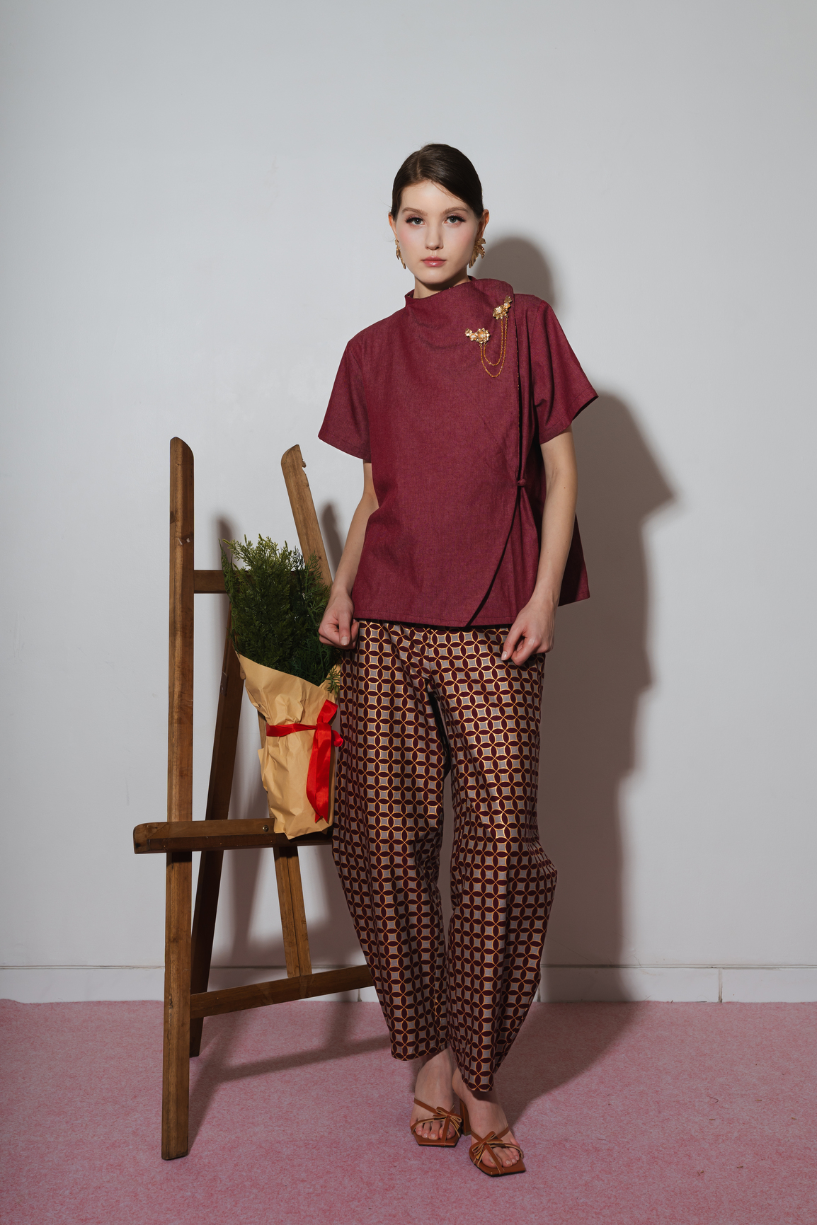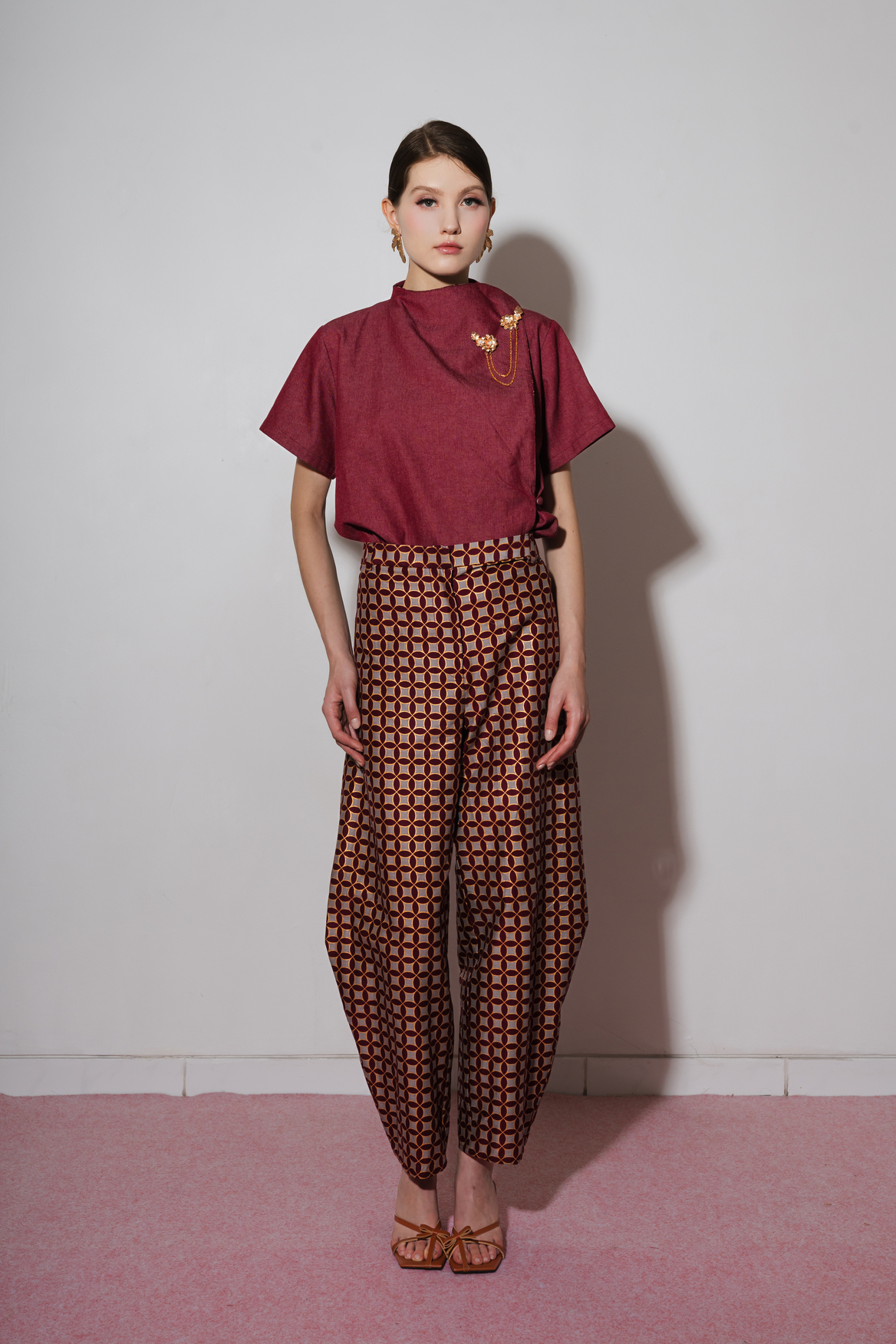 FREE SIZEMove with comfort and confidence in every step with Becca Pants in Batik. Featuring Batik Kawung with gold accents, these pants serve boldness. With the trendy barrel cut, this will stylishly accompany you from morning meeting to dinner date – comfortably, and in style.