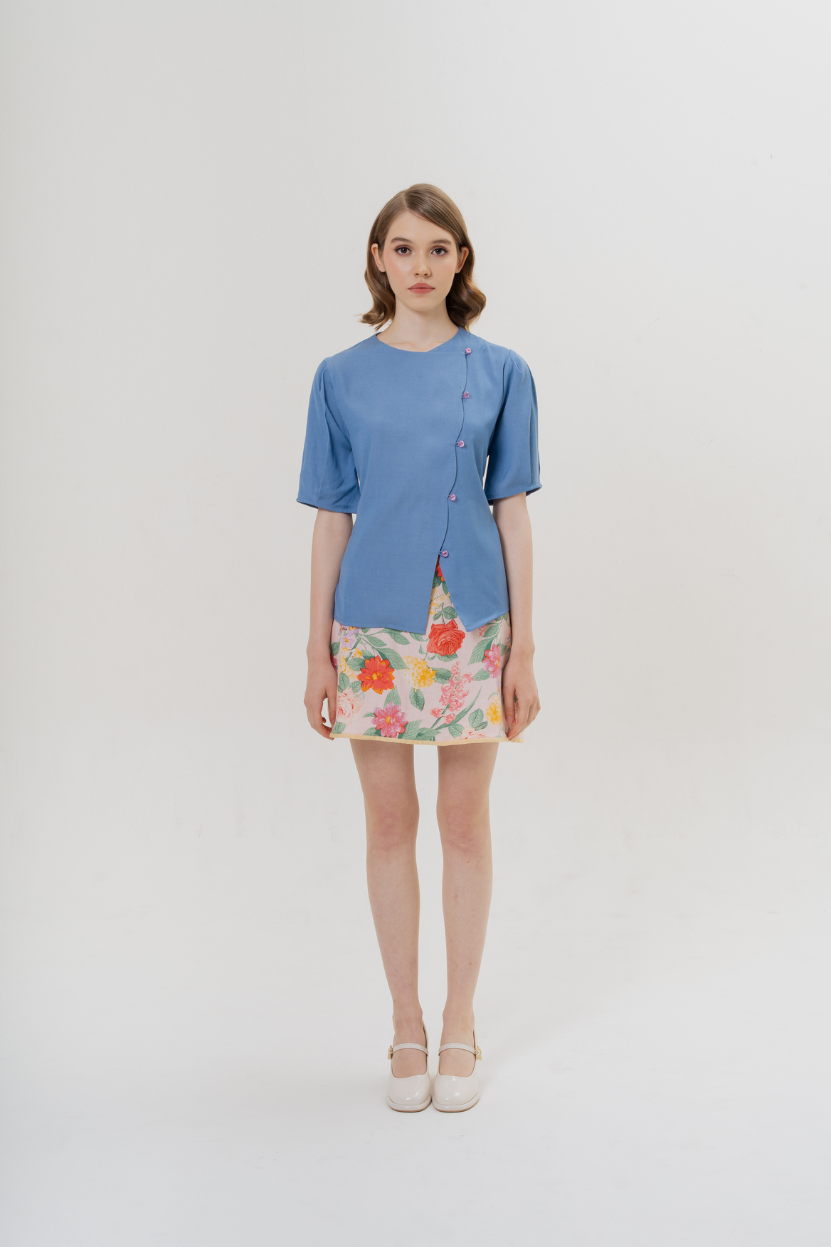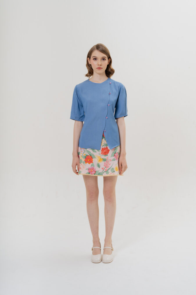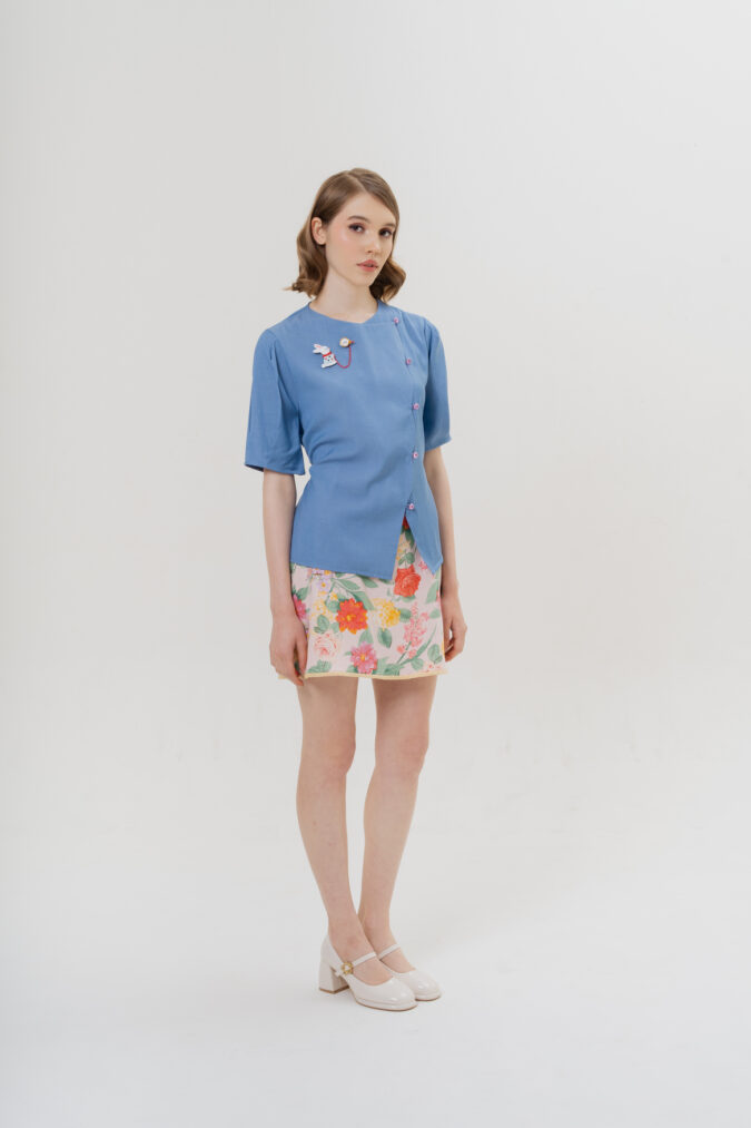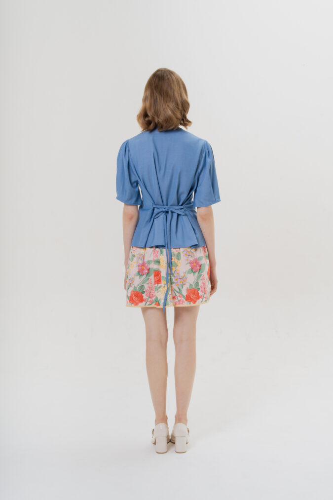 FREE SIZEEmbrace a storybook fantasy with Coney Top in Blue. Featuring a detachable ribbon belt and scallop edge. Complete your look with White Rabbit with Clock magnetic brooch, a versatile double brooch linked by a stylish chain.