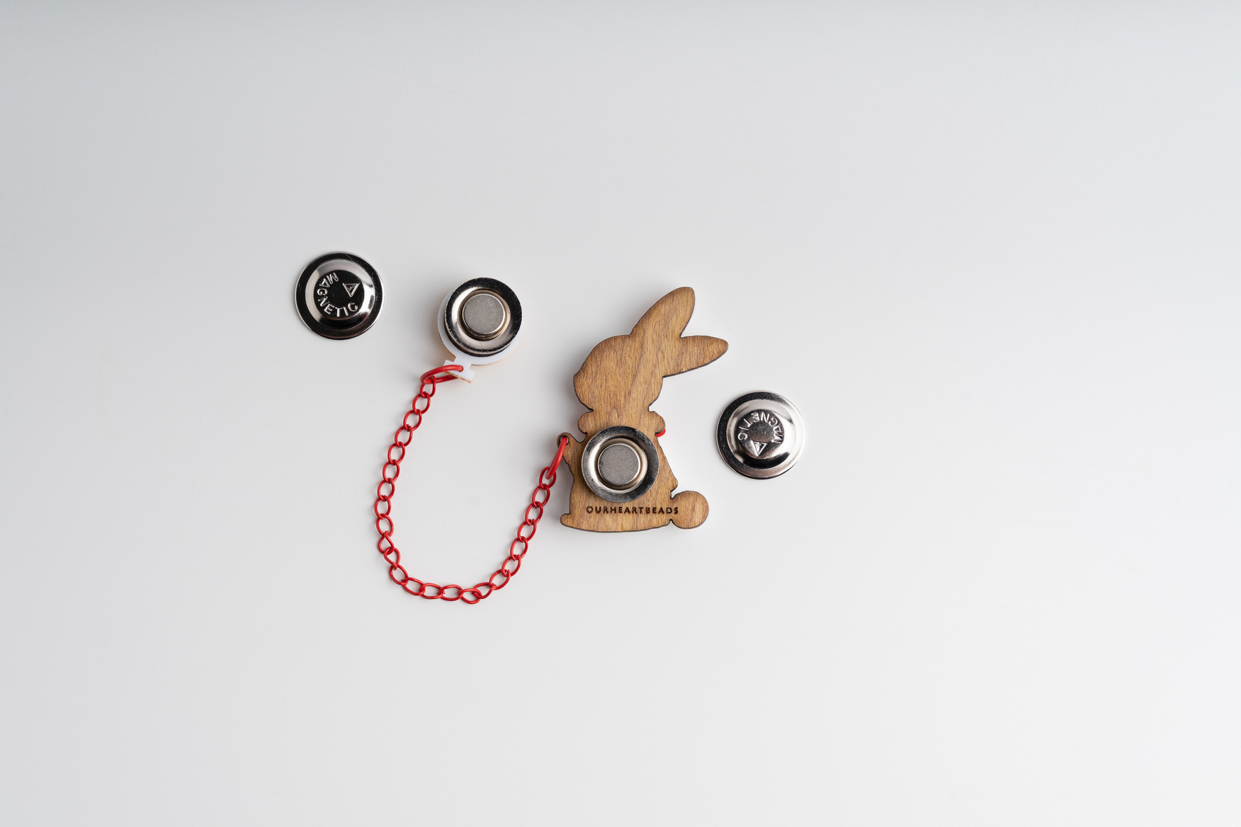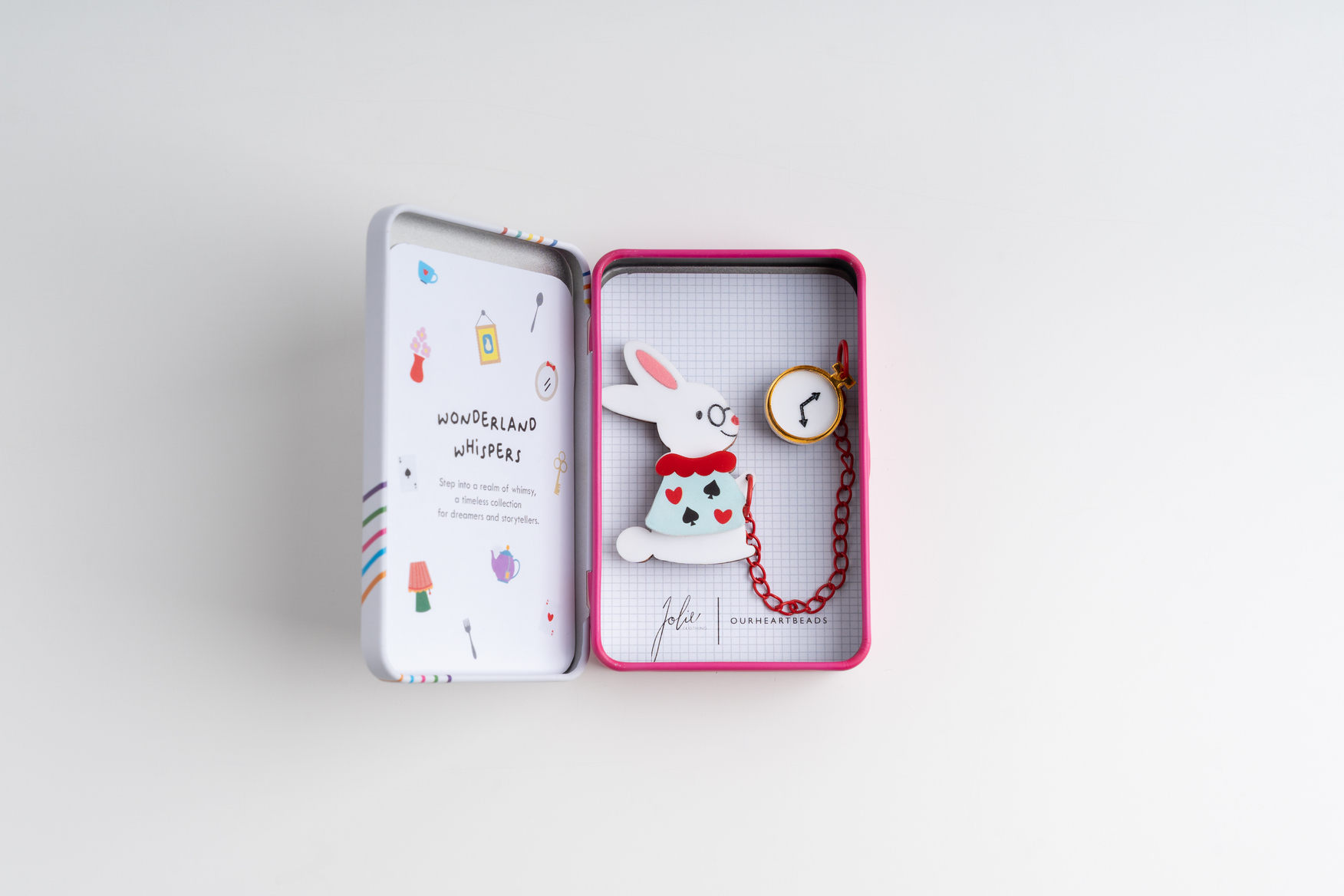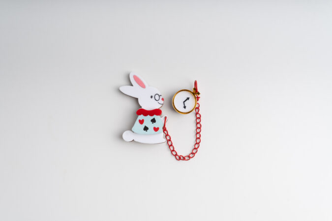 Coney Top in Pink with White Rabbit & Clock Magnetic Brooch