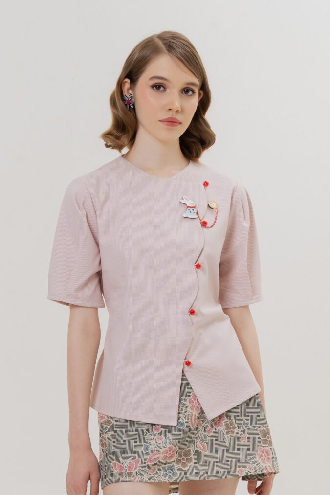FREE SIZEEmbrace a storybook fantasy with Coney Top in Pink. Featuring a detachable ribbon belt and scallop edge. Complete your look with White Rabbit with Clock magnetic brooch, a versatile double brooch linked by a stylish chain.