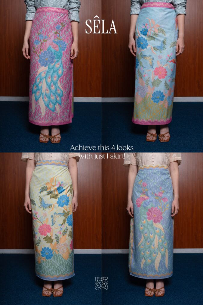 FREE SIZEElevate your everyday style with Natya Wrap Skirt in Blue-Pink, our beloved bestseller now reimagined in a romantic palette. Crafted with double-sided batik patterns in contrasting colors, this versatile piece gives you four different styling looks in one skirt—so you’ll never run out of ways to wear it.