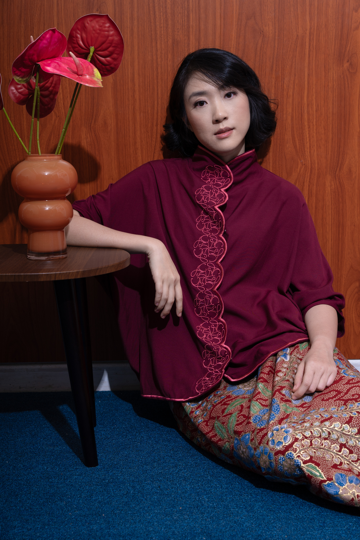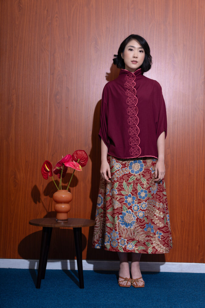 Yinghua Top in Maroon